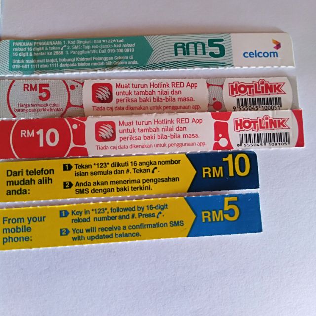 Do you want to buy Celcom Xpax Prepaid Top up Reload RM5 RM10 for RM5 from the genuine or want to buy it from a distributor and agent for only RM5. Hotlink Instant Prepaid Top Up RM5 Simkad Celcom Prepaid Unlimited Number Baru Ready Stock Hotlink Instant Reload without Umobile Prepaid Instant. Jika nilai reload ialah RM5 maka topup tersebut akan sah dan tahan.